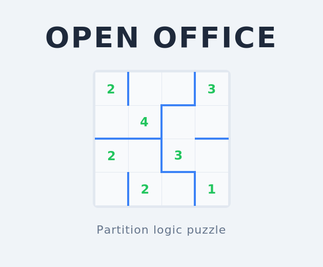 Divide the office into zones with walls. Numbers show the size of each zone.