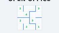 Open Office: Partition Logic Puzzle Draw partition walls between office desks. Each number tells how many walls surround it. All walls must form one closed loop — no dead ends, no branches. Rules: P...